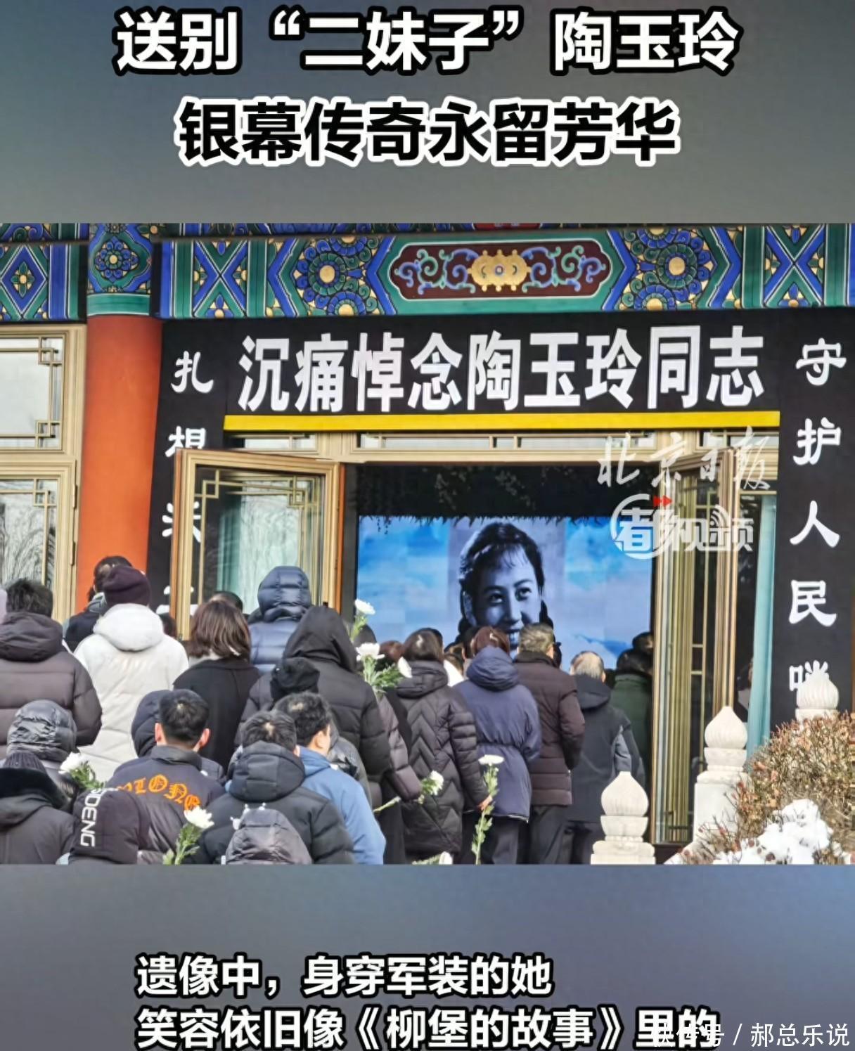 隔天,晴空万里,阳光洒满整条长街。老戏骨陶玉玲的告别仪式就在这样的天气里举行。门口队伍依旧排得老长,只是这次,每人手里都多了一束鲜花——主办方特意安排,让影迷能带着心意进去。大厅中央,她安卧在灵柩中,身上覆盖着党旗,遗照是年轻时一身军装的模样,英气逼人,笑容依旧。